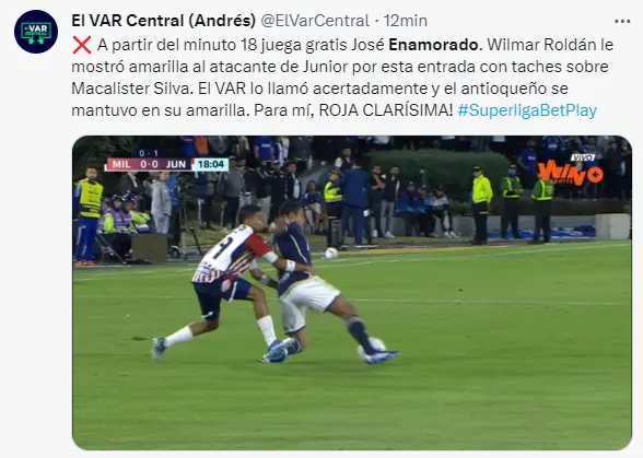 Sin embargo, la polémica iba a llegar antes de la primera mitad de hora, cuando el jugador José Enamorado le dio un pisotón violento al capitán del ‘Azul’, David Mackalister Silva, quien quedó tendido en el gramado con claras muestras de dolor mientras Wílmar Roldán solo le sacaba tarjeta amarilla al jugador visitante.