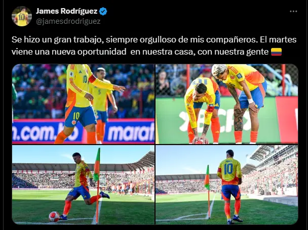 "Se hizo un gran trabajo, siempre orgulloso de mis compañeros. El martes viene una nueva oportunidad en nuestra casa, con nuestra gente", escribió James en sus redes sociales. Estas palabras reflejan la actitud positiva y optimista que caracteriza al jugador, quien a pesar de los resultados adversos, siempre busca motivar a sus compañeros y a la hinchada.