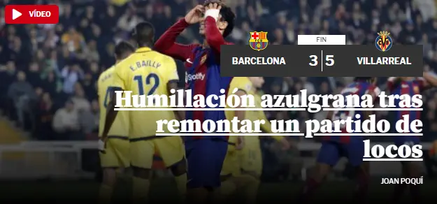 La prensa española reaccionó ante la humillación del Barcelona y destacó el papel del ‘Submarino amarillo’ en dar vuelta al marcador y golpear nuevamente a los catalanes, mientras que el zaguero cafetero demostró tener una gran oportunidad en el club amarillo y su desempeño lo perfila como una joya para la Selección Colombia bajo la dirección de Néstor Lorenzo.