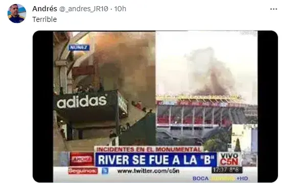 Pero, la polémica no se detuvo allí. En las redes sociales, los hinchas de Boca Juniors no tardaron en recordar el trágico incidente de River Plate en 2011, cuando el equipo descendió a la B Nacional y sus seguidores incendiaron el Monumental.