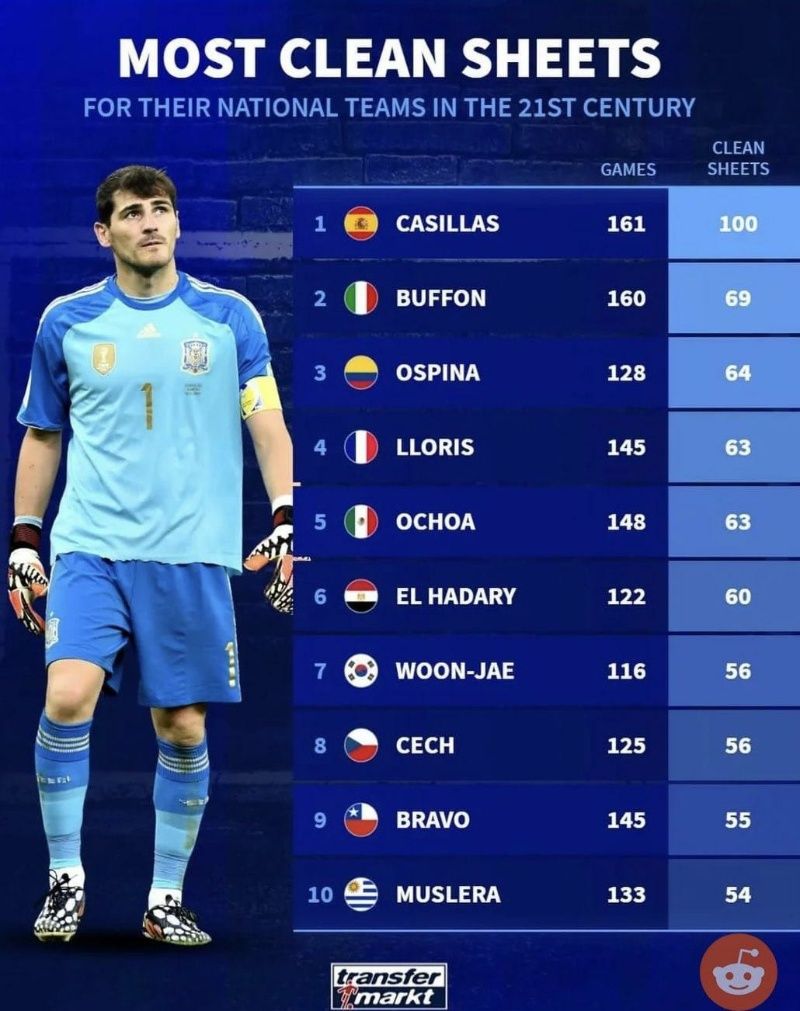 El exarquero de Atlético Nacional hace parte de un selecto listado que resalta a los mejores porteros del Siglo XXI, los cuales se han destacado por la cantidad de vallas invictas que han logrado sacar jugando con sus selecciones. En este grupo, Ospina es el tercero mejor con 64 partidos sin recibir gol en 128 encuentros jugados, siendo solo superado por Íker Casillas (100 de 161) y Gianluigi Buffon (69 de 160).