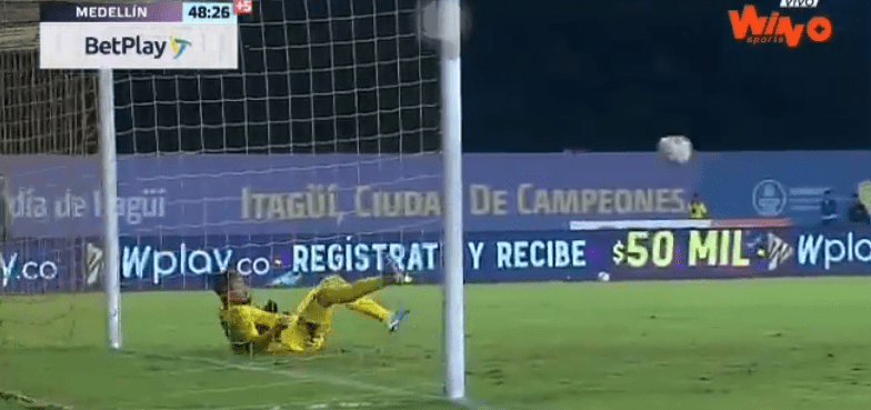 Pero, la pesadilla para los capitalinos no había terminado, pues a los 44 minutos se iba a pitar otro penalti a favor de los locales. Esta vez, Stiven Vega abrió el brazo y el balón impactó en su mano. De nuevo, Cetré fue al cobro, el cual ejecutó de manera exquisita picando el balón y humillando a Montero, quien quedó como una tortuga patas arriba viendo cómo el esférico ingresaba lentamente.