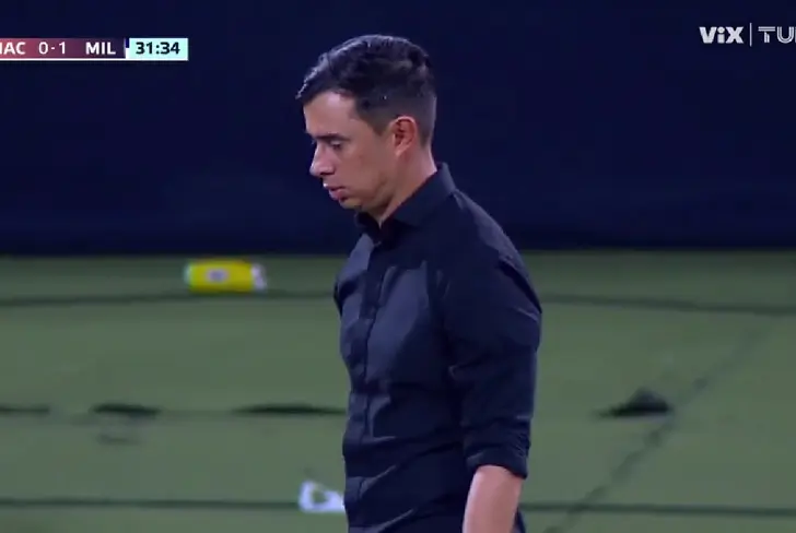Ante esta pasividad de los hombres de la zaga, la cámara de la transmisión enfocó al entrenador de Nacional, quien con la mirada al suelo y cara de pocos amigos reprobó la acción de sus jugadores, demostrando que no estaba para nada contento con la acción.