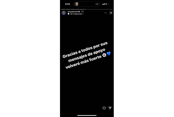 “Gracias a todos por sus mensajes de apoyo volveré más fuerte”, fue el mensaje que publicó el futbolista afectado en su cuenta oficial de Instagram a través de una historia. De inmediato, el mensaje fue replicado en distintas redes sociales por los seguidores del club, quienes se mostraron muy tristes por la situación del defensa.