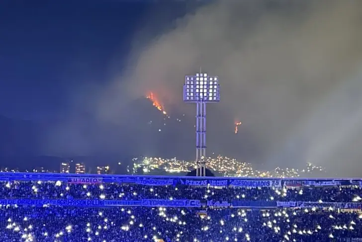 Pero, más allá de la euforia que se vivió en el máximo escenario bogotano, en las últimas horas se ha revelado una foto bastante dolorosa, la cual refleja la fiesta del fútbol que se vivía en el recinto, pero de fondo también se veía uno de los cerros de la capital siendo consumido por las llamas de los incendios forestales que están afectando de manera severa a los ecosistemas del país en los últimos días.
